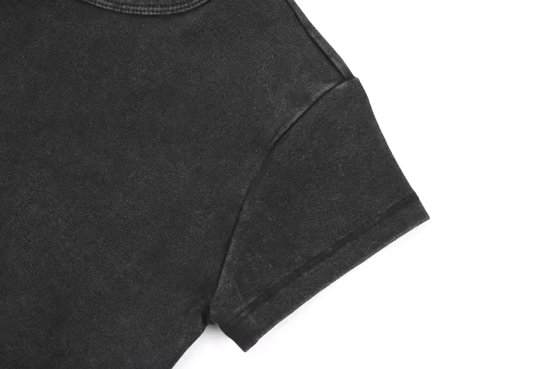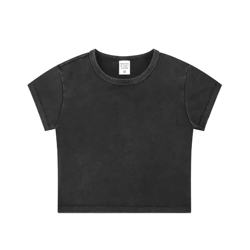 تي شيرت بأكمام قصيرة من قطن مغسول تم تطويره لبرامج الملابس الكاجوال النسائية وبرامج العلامات الخاصة.