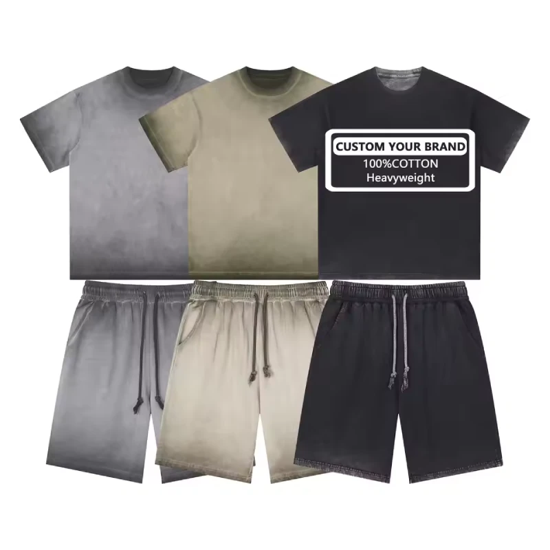 Blanko-Baumwoll-T-Shirt mit kurzen Ärmeln und passendes Shorts-Set für die Beschaffung in Großmengen und Private-Label-Programme.