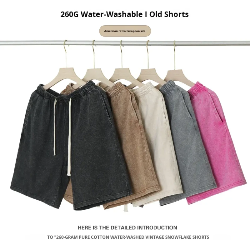 The garment features a cropped short length and loose silhouette for comfortable daily wear. The washed finish gives the fabric a softer appearance and a vintage-style look, while the elastic waist allows easier fit adjustment across multiple sizes.