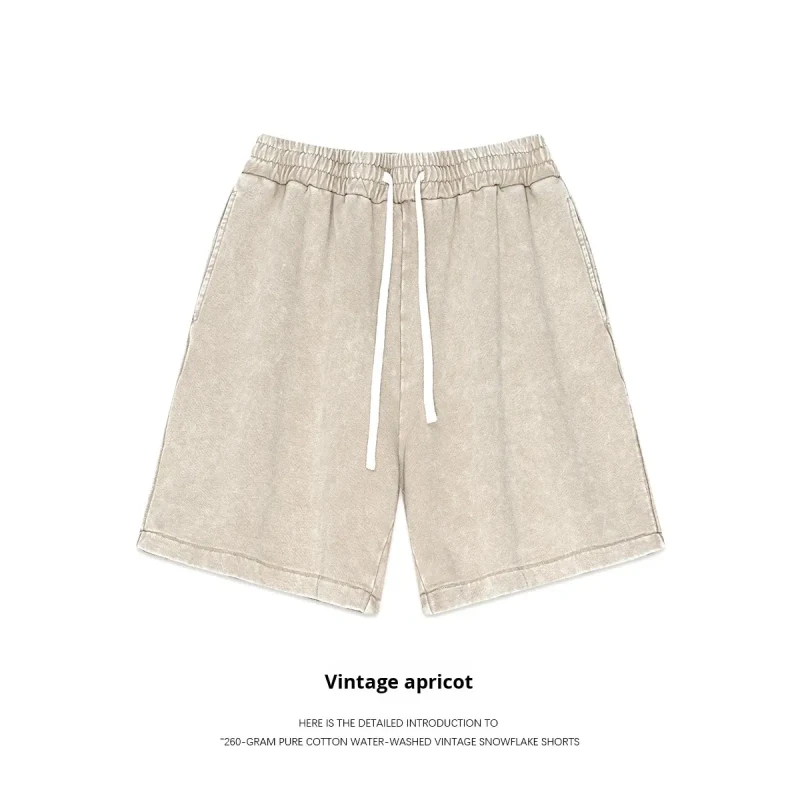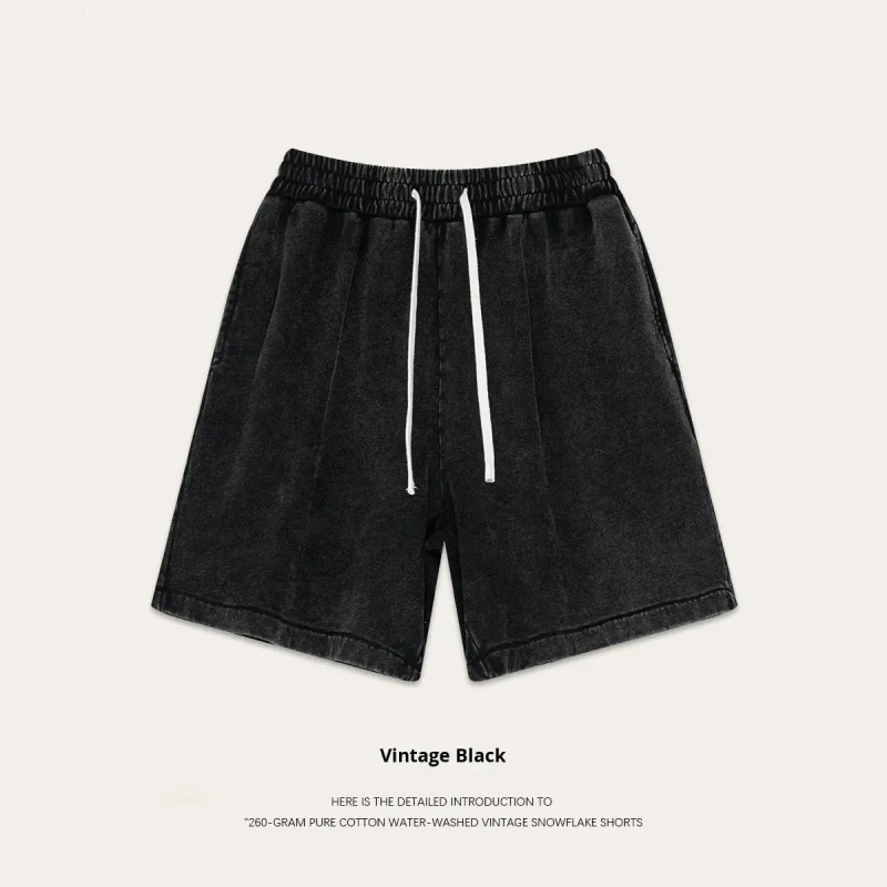These men’s cropped shorts are produced in 260g cotton fabric with a washed surface treatment and relaxed fit. The product combines a solid color appearance with an elastic waist structure, making it suitable for casual apparel collections and large-size programs.