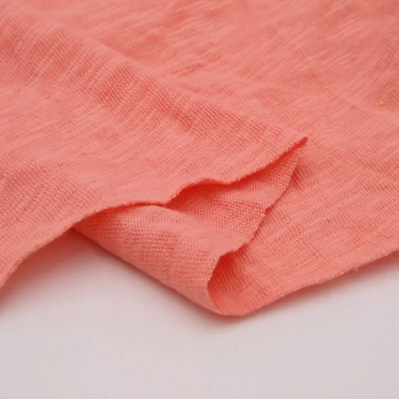 Slub jersey fabric is widely used for T-shirts, casual wear, children’s garments, underwear, and lightweight summer apparel. Its textured surface and breathable structure make it suitable for comfortable, everyday clothing with a natural and slightly irregular aesthetic.