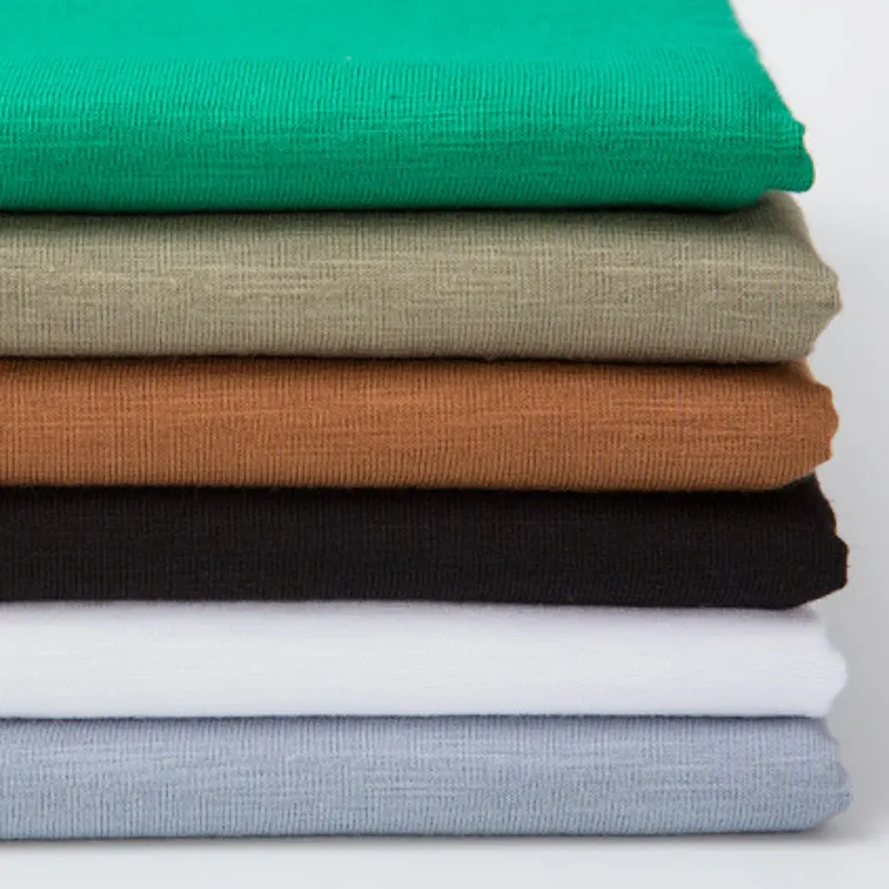 The single jersey knitting structure ensures a lightweight and comfortable hand feel, while the slub effect adds a casual and slightly textured appearance favored in modern apparel design. It is easy to cut, sew, and print, making it a practical choice for large-scale garment production.